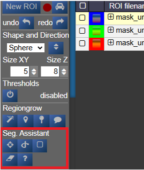 First, select an ROI from the ROI list to make it the active target for segmentation.